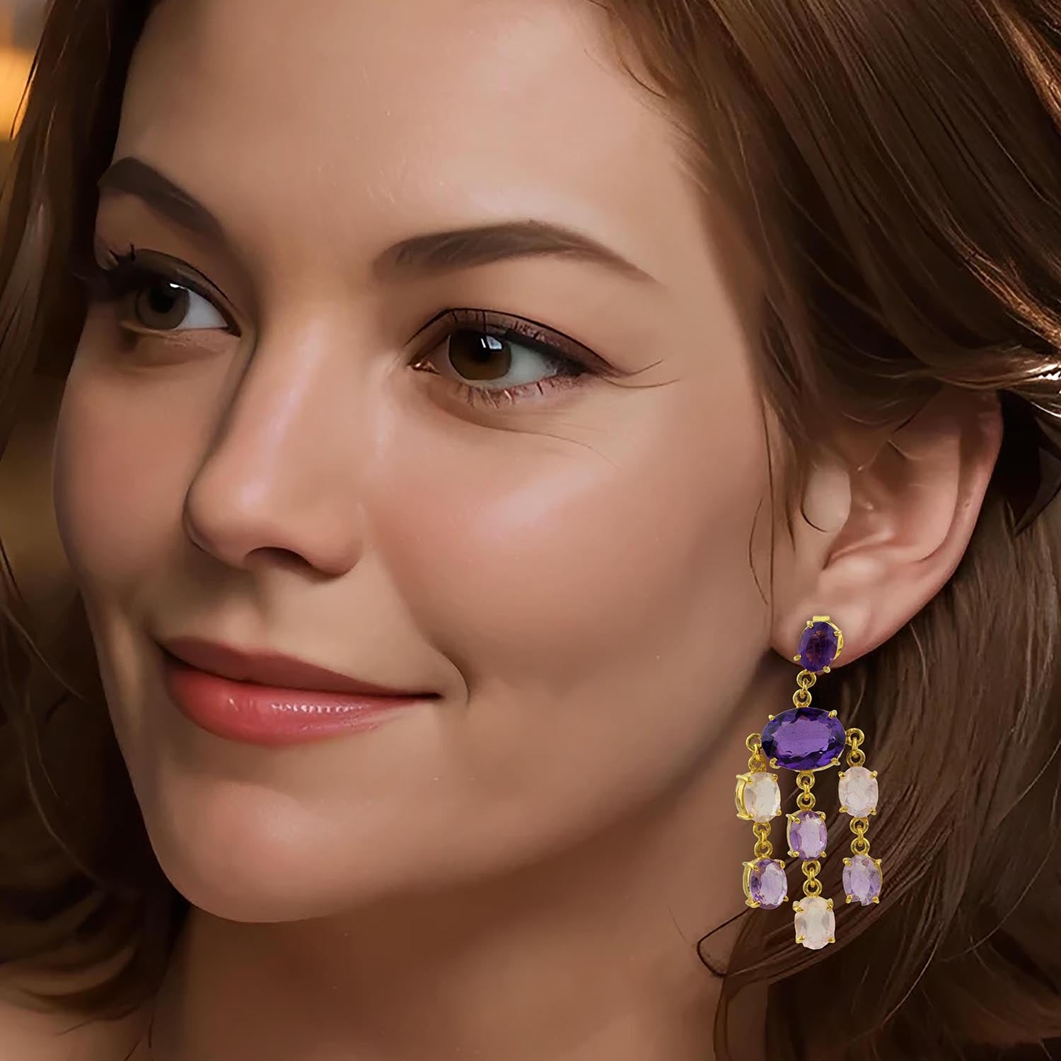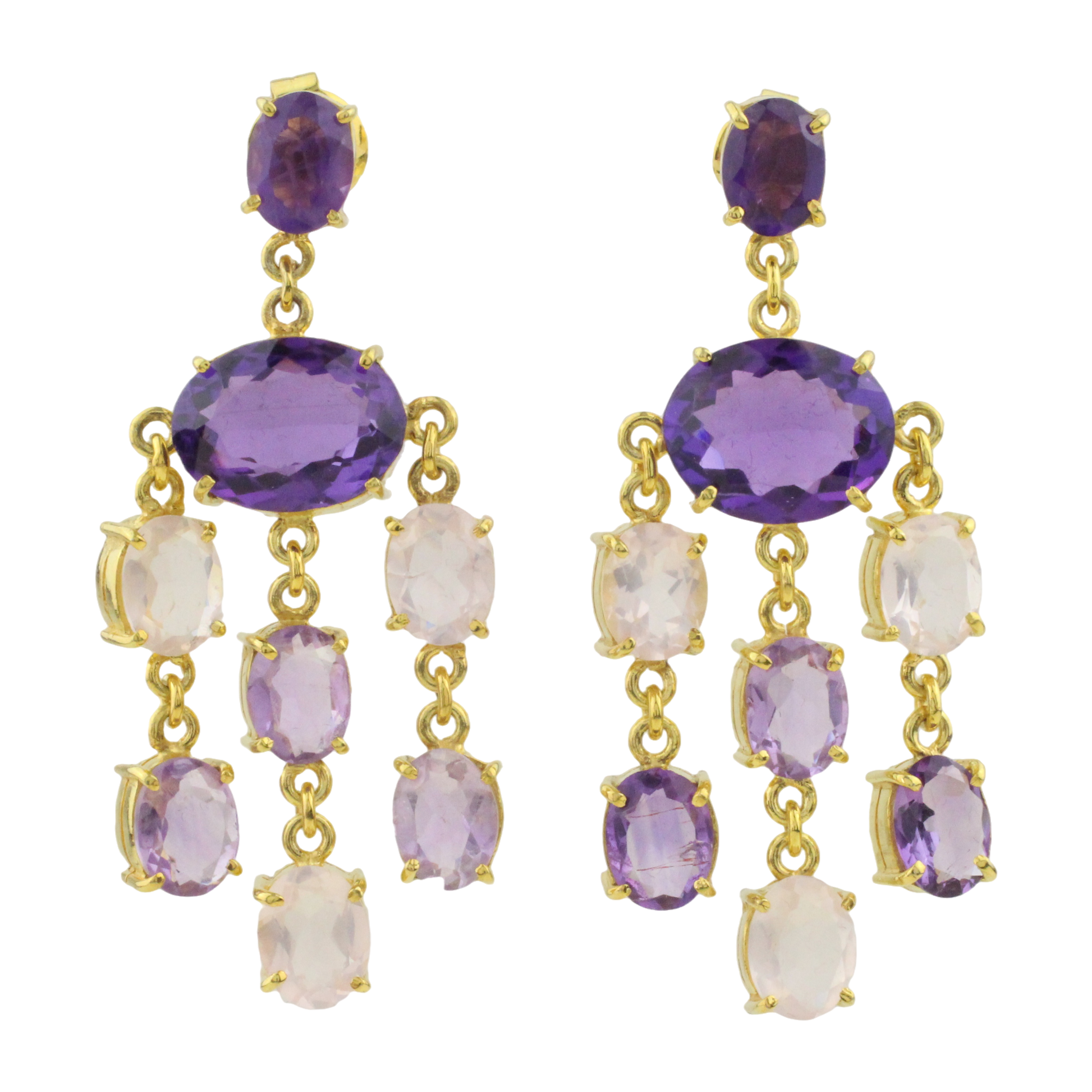 Varför du kommer älska dem: Dessa örhängen är en hyllning till kvinnlighet och färg. Den djupa ametisten står för lugn och klarhet, medan den ljusa rosenkvartsen symboliserar kärlek och harmoni. Tillsammans skapar de ett smycke som både är romantiskt och kraftfullt – perfekt till både fest och eleganta vardagsstunder.