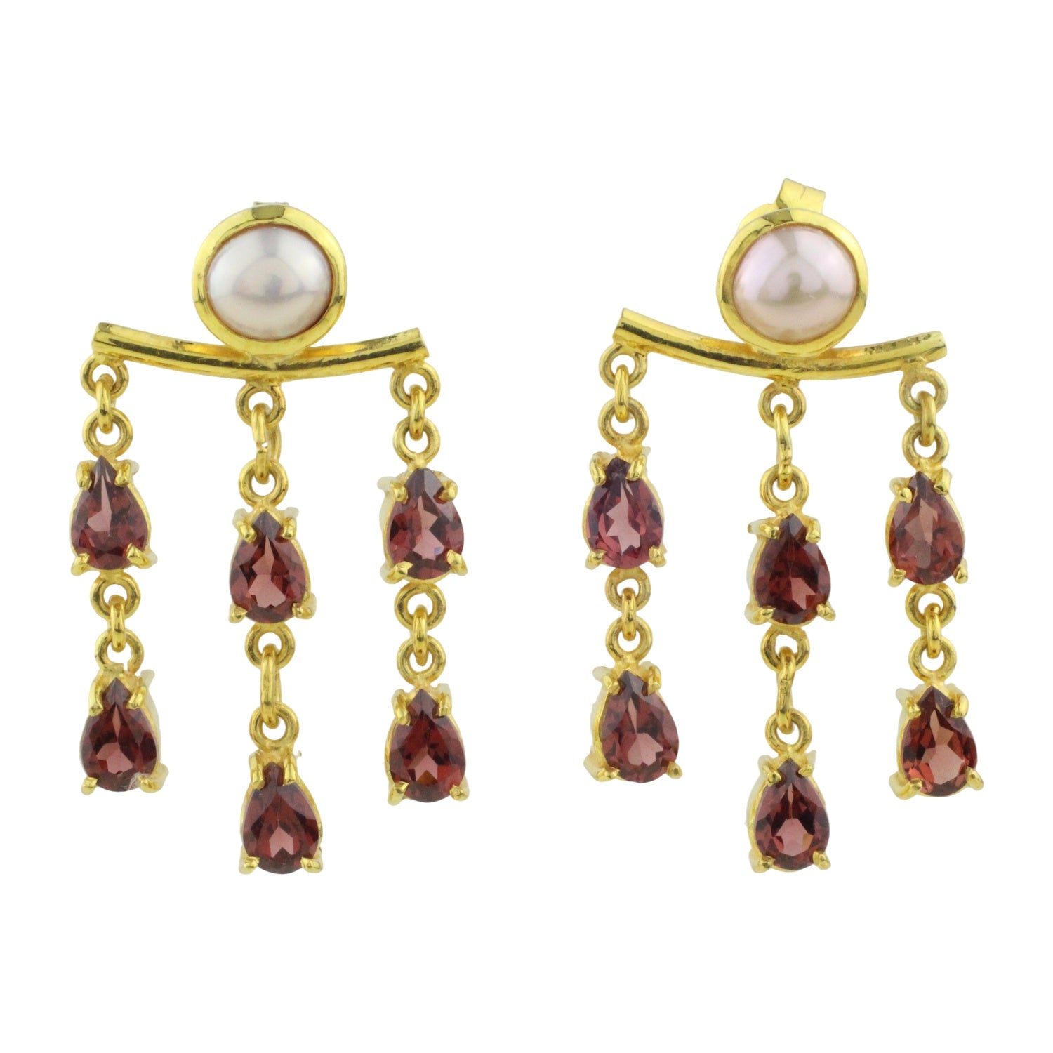Handgjorda örhängen i äkta sterlingsilver (925), förgyllda med 22K guld – Pärlor & Röda Granater