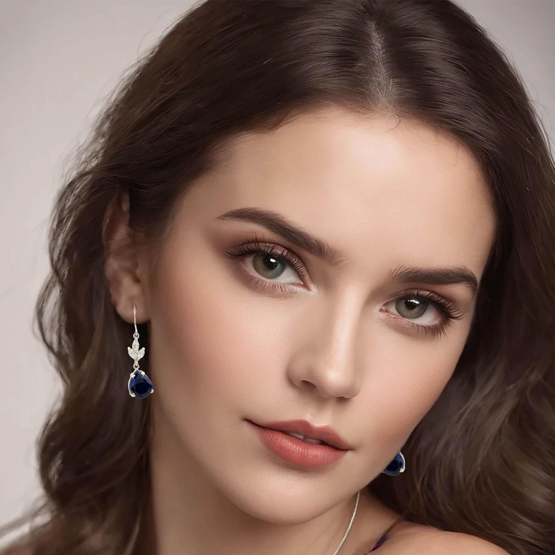 Låt elegansen tala med dessa handgjorda örhängen i äkta sterlingsilver, utsmyckade med 22 karat naturliga, djupblå fasettslipade safirer och 1 karat vita fasettslipade topaser. Den sofistikerade kombinationen av safirens intensiva blå nyans och topasens kristallklara gnista skapar ett tidlöst uttryck av lyx och klass.