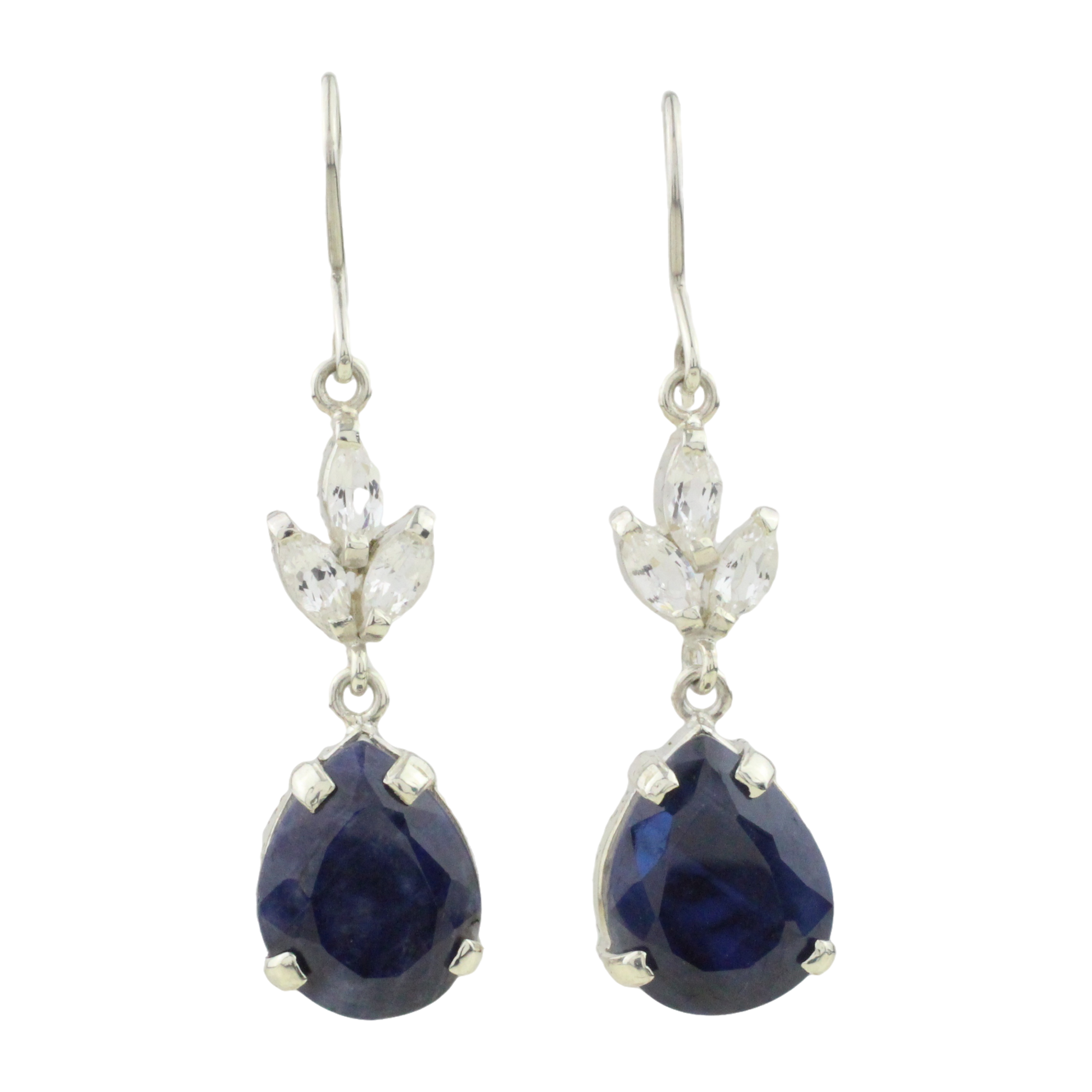 Handgjorda örhängen i äkta sterlingsilver – naturlig safir & vit topas