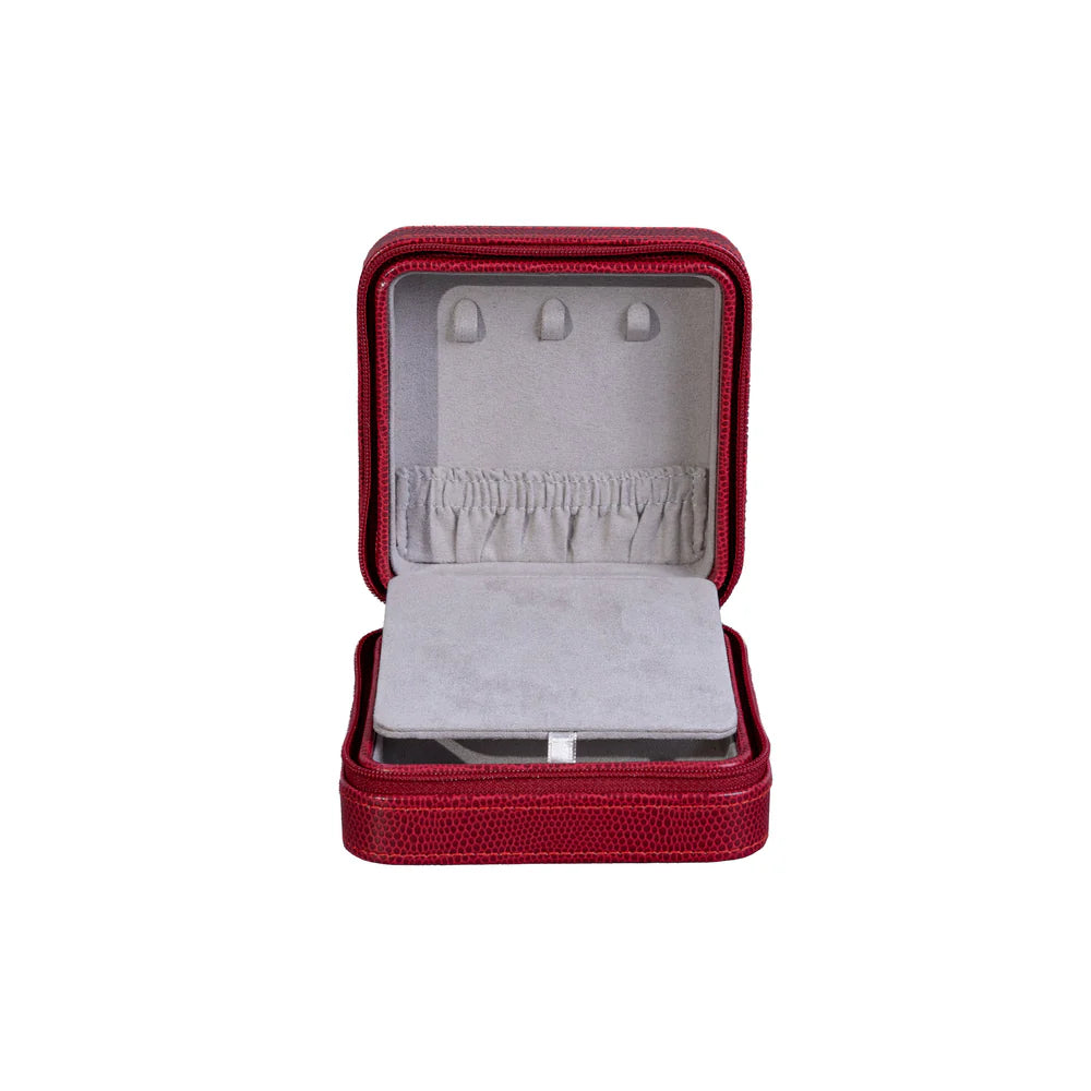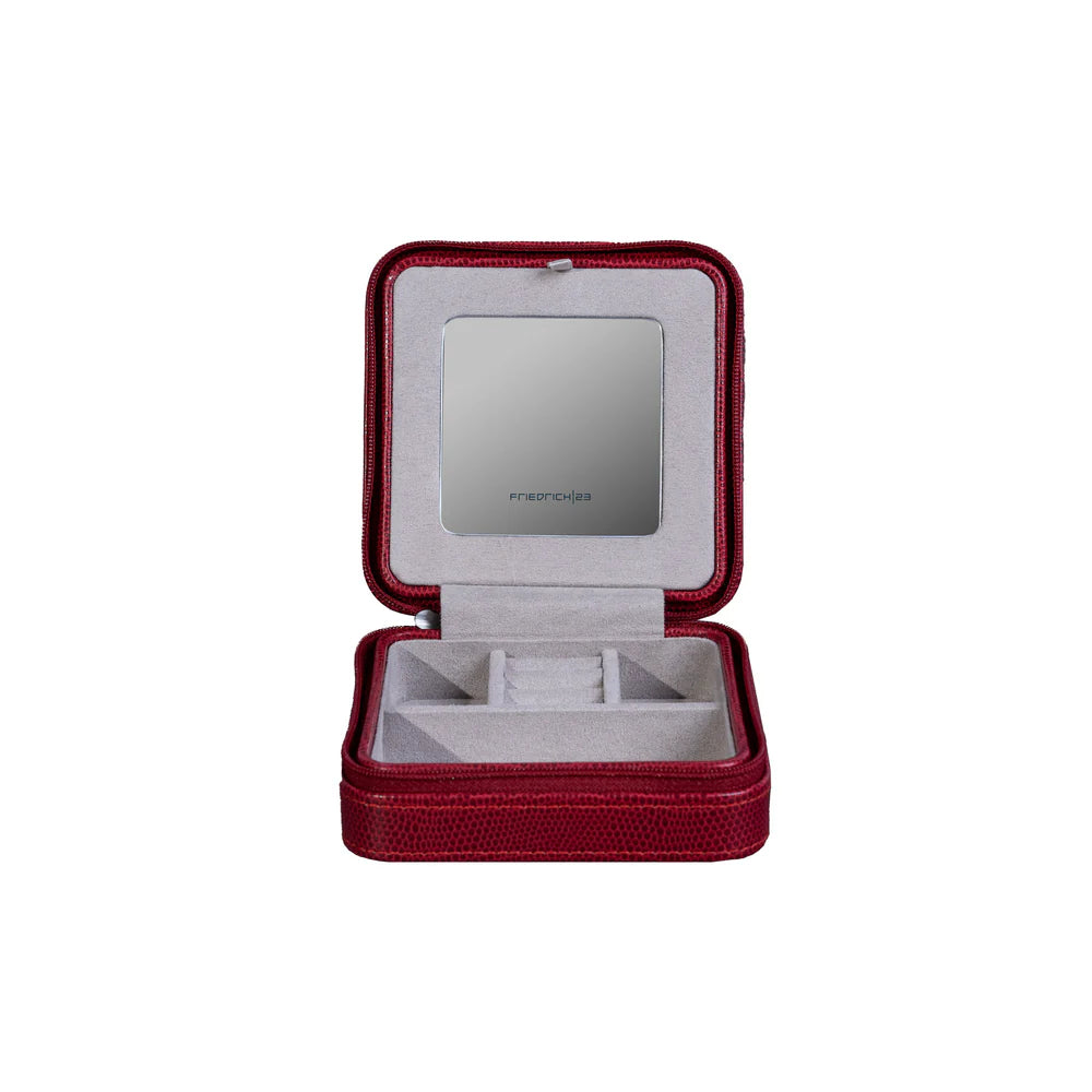 Smyckeetuiet Milano är något alldeles extra med sin extravaganta ödlelook. Etuiet har en spegel och ringrader samt en mångsidig inredning med flera fack. Den mjuka insidan skyddar ringar, halsband, armband, örhängen och andra smycken på bästa sätt. Perfekt som reseetui när du vill ta med dina favoritsmycken på ett säkert sätt.